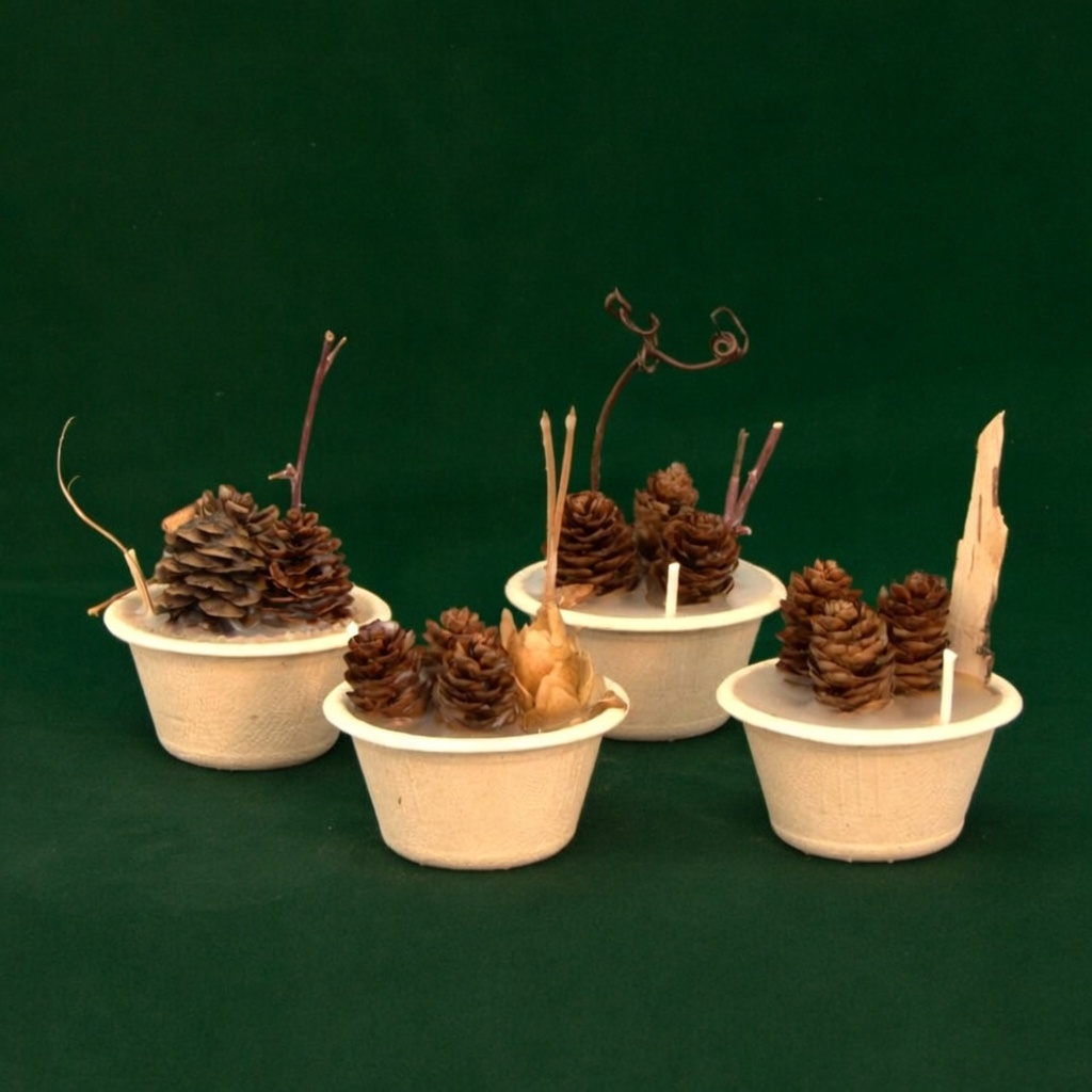 - Beautifully finished – Uniquely adorned with natural accents like birch bark, dried vine, or pine cone scales for added rustic charm. Four-packs consist of a variety of styles.